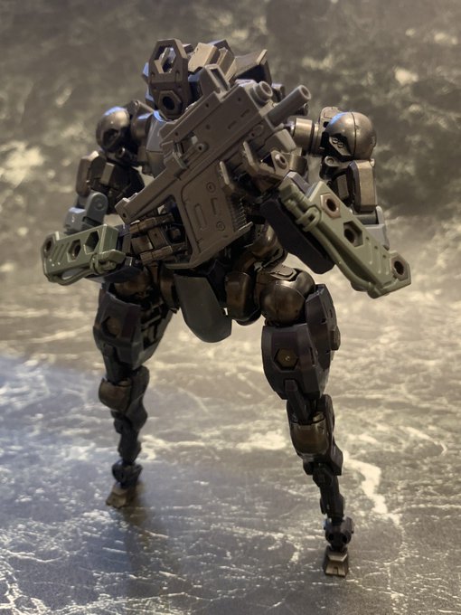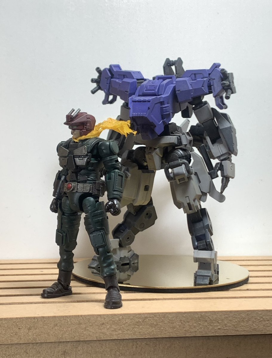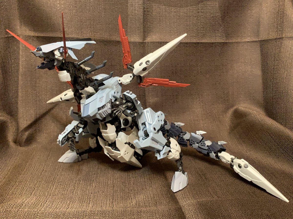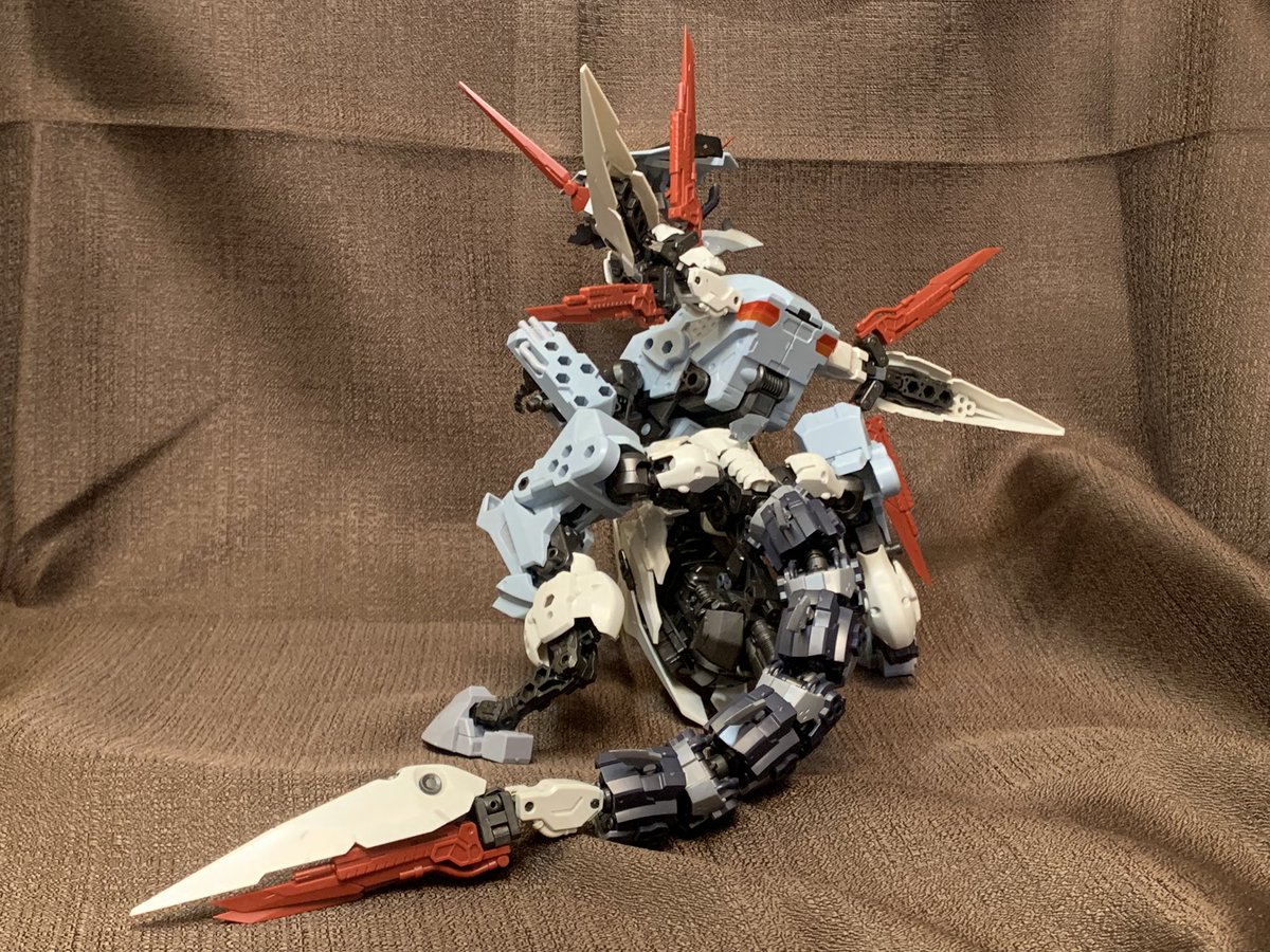 #今年作ったプラモ晒そうぜ #ヘキサギア #これが俺のブイトール ●ブイトール組替え VR-THOR 後になって脚部ブレードを「回し蹴りの時に刃が向く側」にした思い出笑 ボルトレックスの後継機なのにボルトレックス感がなかったので、古参兵が自機を組み込んだってイメージで作成