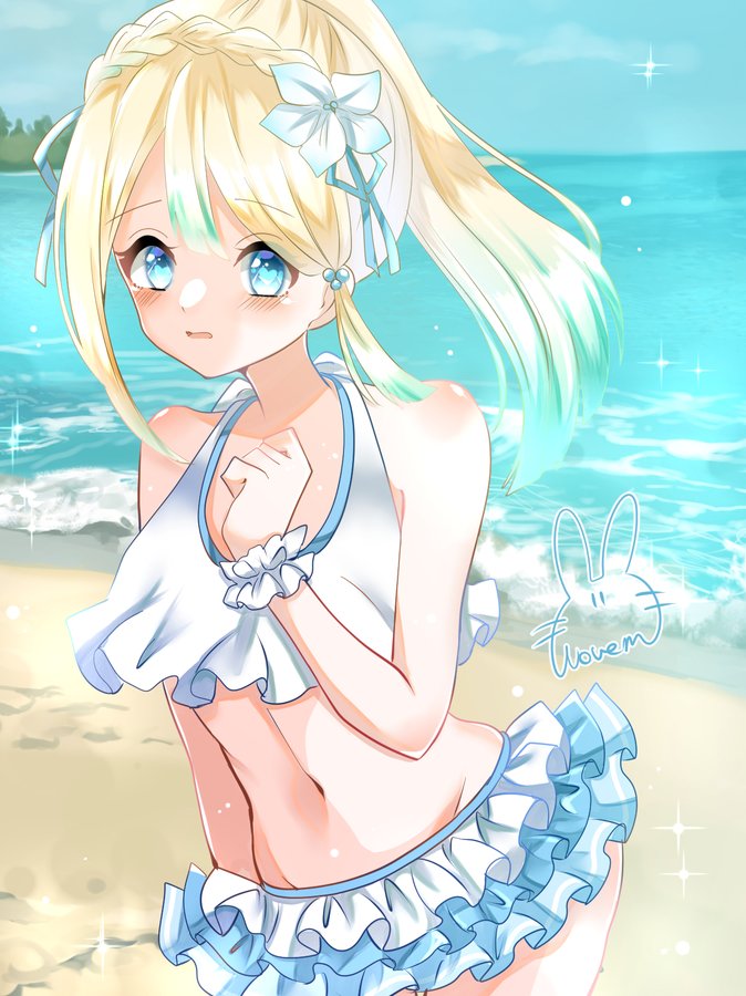 ※捏造注意※ 『先輩!海デートってドキドキしますね…』 青春アリスちゃんの水着が見たい💙 #コンパス #コンパスお絵描き