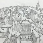 赤点小テストが裏紙に早変わり ごちゃごちゃした街描くのって楽しいです #イラスト #イラスト好きと繋がりたい #イラスト初心者 #イラスト練習中 #イラストレーターさんと繋がりたい #絵描きさんと繋がりたい #創作 #オリジナル #街 #街並み #風景画 #風景