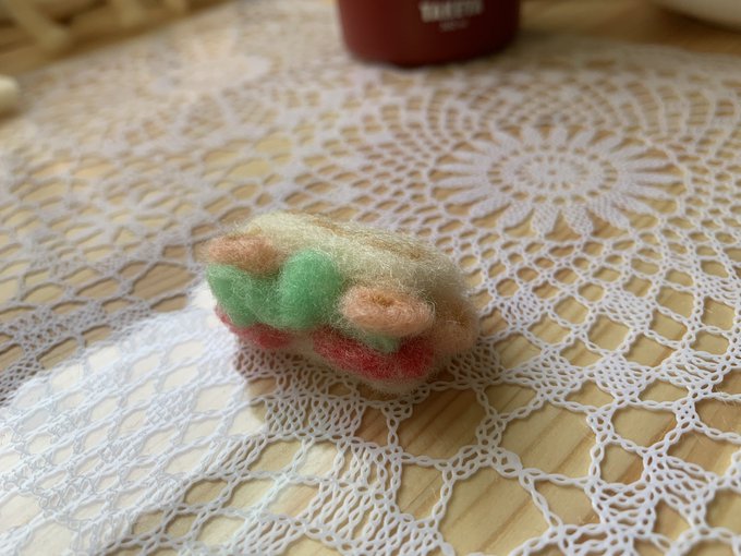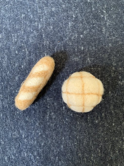 #羊毛フェルト #羊毛フェルト初心者 割と最近作ったパン🍞メロンパンはver.2です、ver.1は失敗した…😅フランスパンはまぁまぁかな🤔? ここら辺で土台の固さの強度を臨機応変に変える事を学ぶ、深い🤔 そして美味しい物を作るのは楽しい事に気付く🍞 ドンドン作った物載せないと🐑
