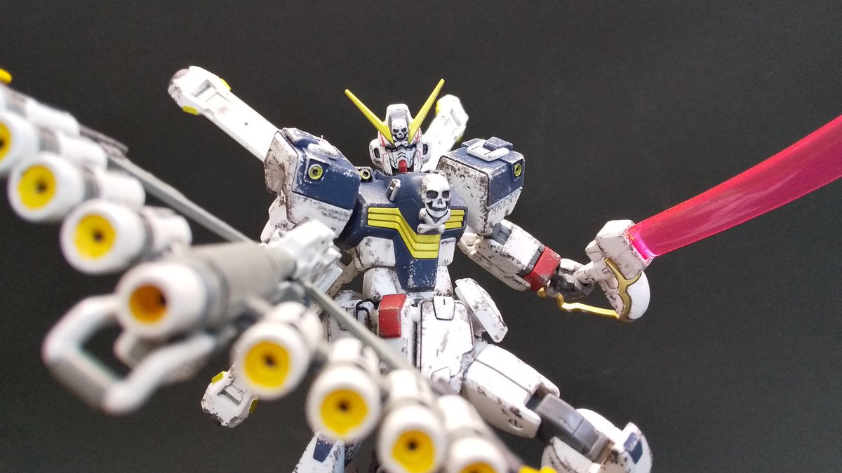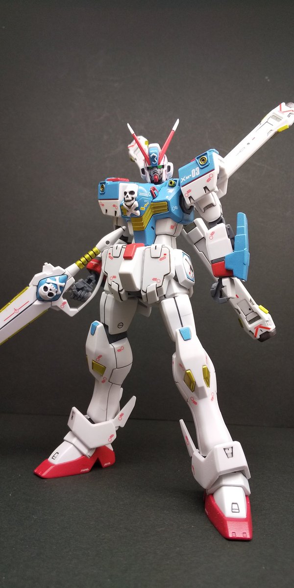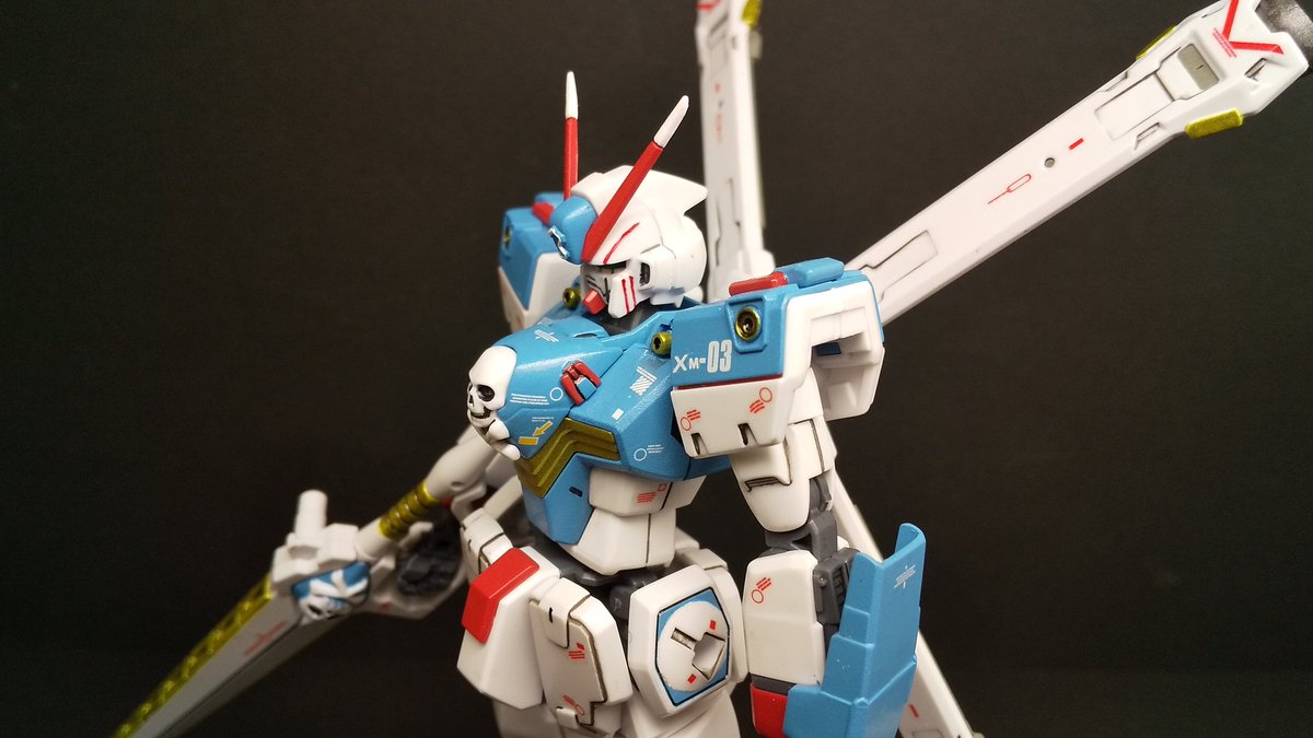 HGUC クロスボーンガンダムX3 完成しました! 漫画のカラーに近い水色と朱色を調色して塗装し、X1改のケツパーツから元の通常パーツに変更しました #ガンプラ #みんなでガンプラ #ガンプラの画像を貼るとRTされると聞いて