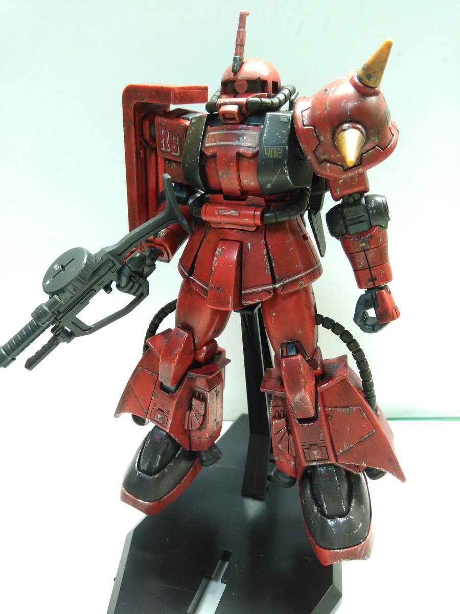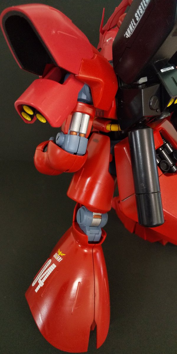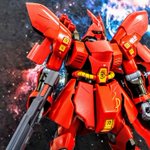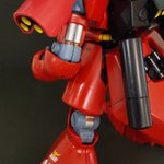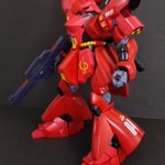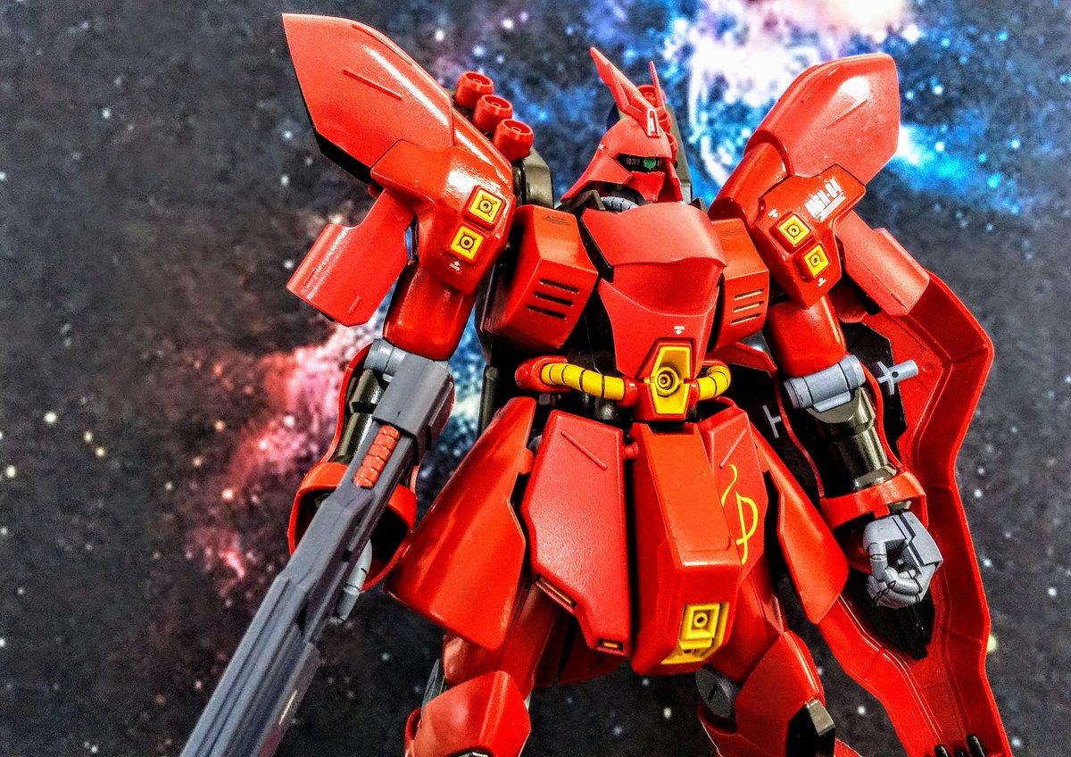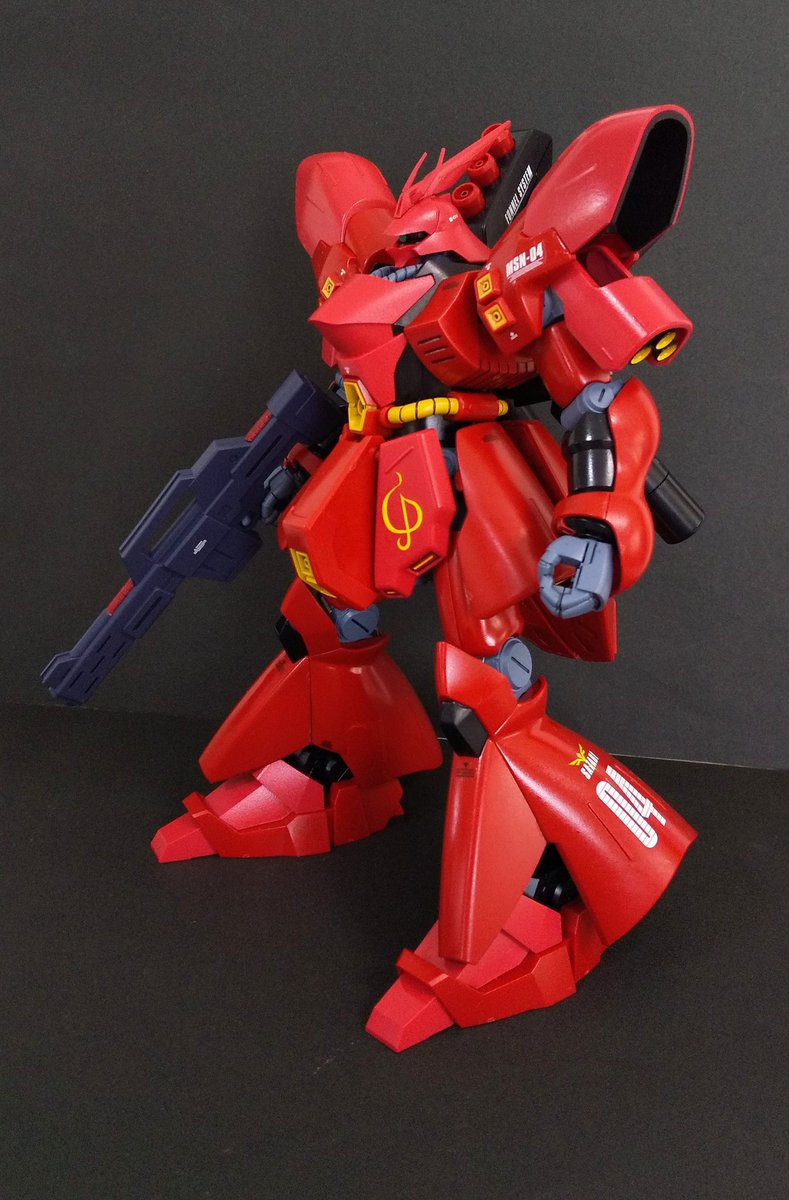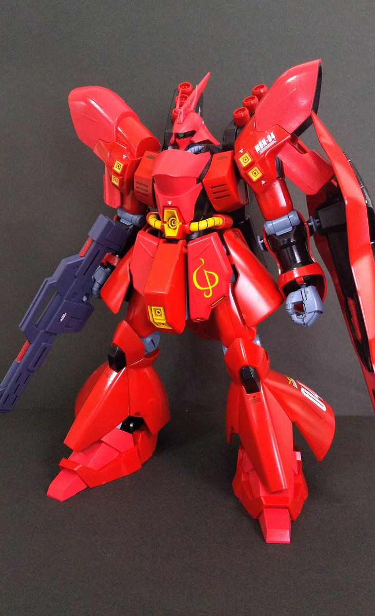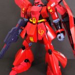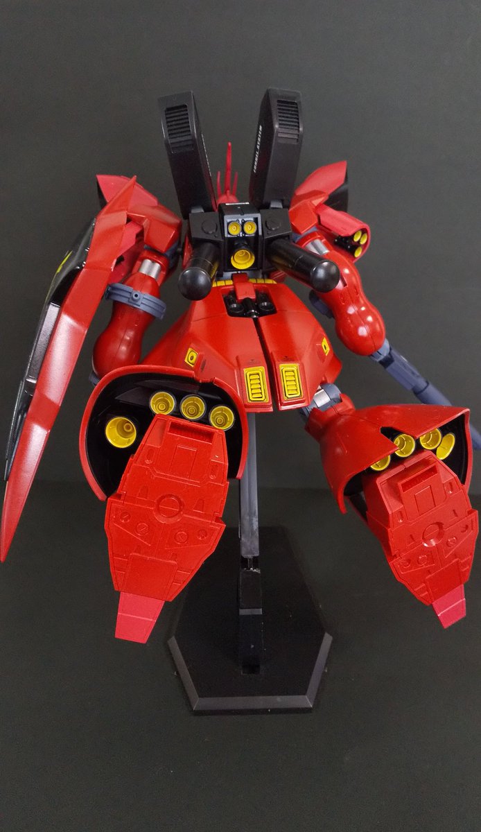 HGUC サザビー 完成♪ 関節や武器は劇中に近い色を調合して塗装し、赤とピンクの装甲を塗り分け、バーニアや関節等を部分塗装して光沢で仕上げた 個人的にはバーニアが上手く塗装できたと思う #ガンプラの画像を貼るとRTされると聞いて