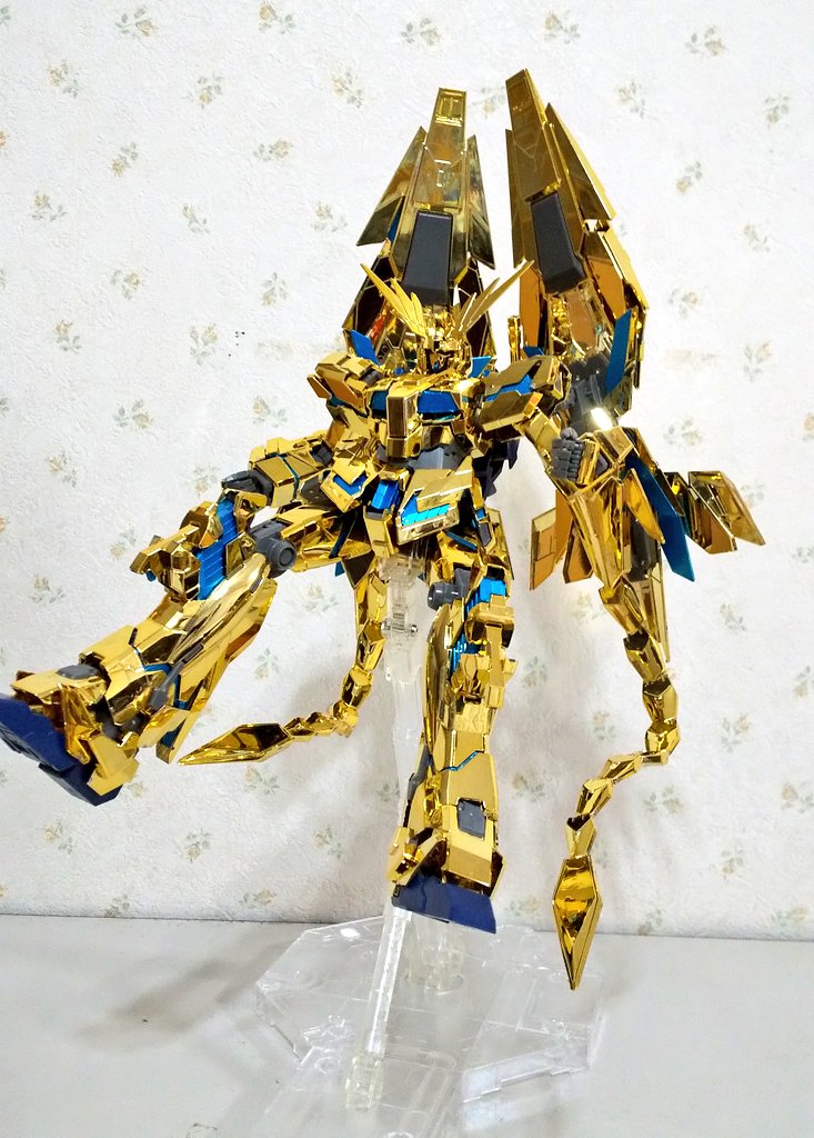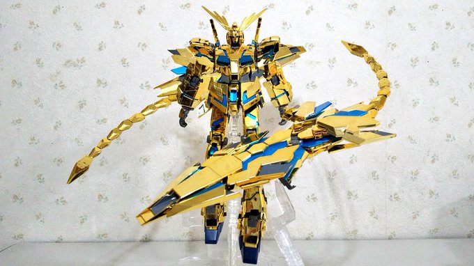 MG ユニコーンガンダム3号機 フェネクス ナラティブver. 完成! ガンプラとは思えない神々しい雰囲気があり存在感がとても強い一品です♪ サイコフレームをラフシルバー→蛍光ブルーのクリアータイプでキャンディー塗装した以外全て素組みです #ガンプラの画像貼るとRTされると聞いて #フェネクス