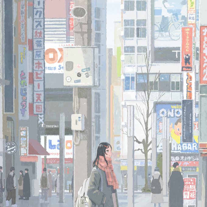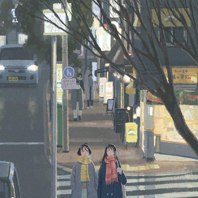 夕方の商店街 GReeeeN「LIFE」MVに書き下ろしたイラストです。 #GReeeeN