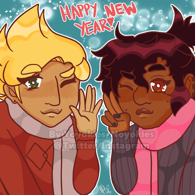 Happy New Year from Sam and Benji! #Procreate #digitalart #originalcharacters #ArtistOnTwitter #procreateart