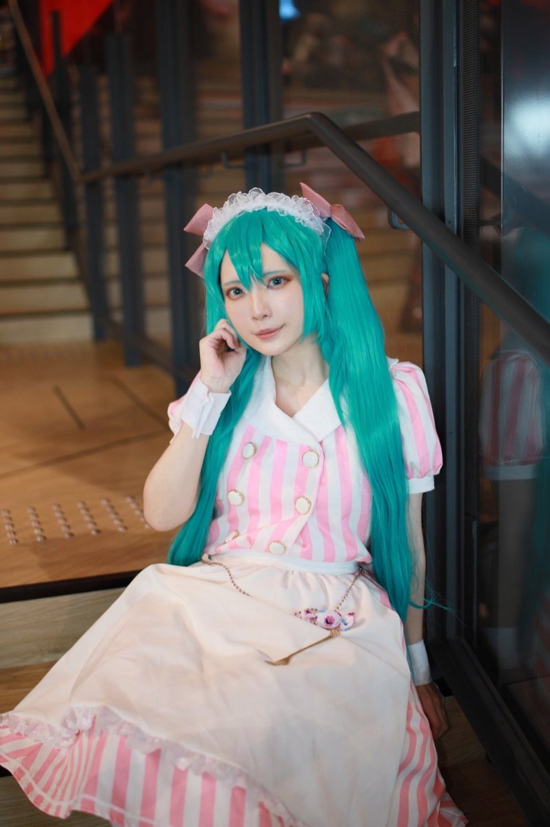※コスプレ 初音ミク🍬🍭コラボ衣装 初対面にも関わらず厚かましくも二着目も撮影お願いして連れまわしてしまいました🙇♀️💦 カメラもってきてなくてスマホ自撮りしかなかったのでほんとに感謝です🙏😂✨ P︰かよちん(@kayochin123456) #アコスタセブンパーク天美