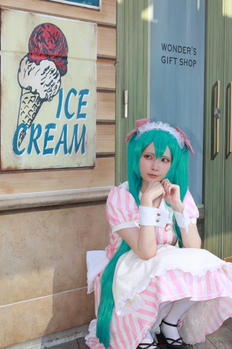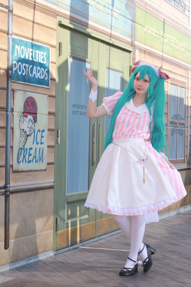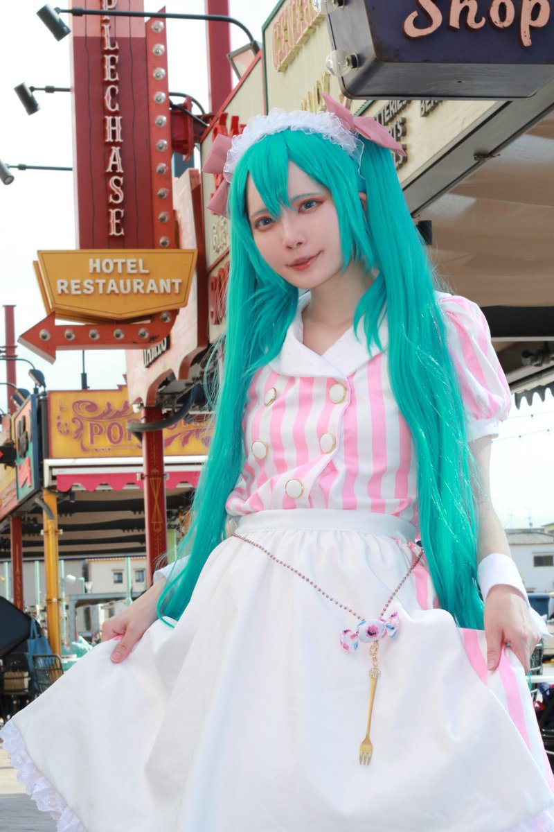 ※コスプレ 初音ミク🍬🍭コラボ衣装 あしかけPには前回もかみこすでミクちゃん撮影してもらってました😄👍 対戦ありがとうございます‼️✨ P︰あしかけ(@asikke) #アコスタセブンパーク天美