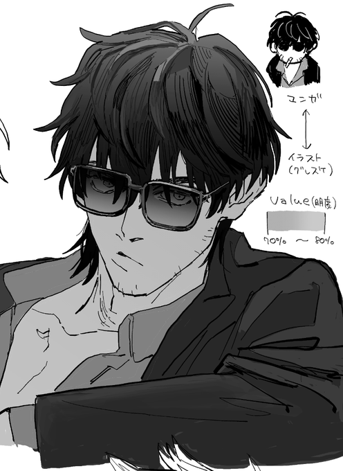 だいたい明度70~80%くらい、漫画かく時は塗らないことが多いかもという謎