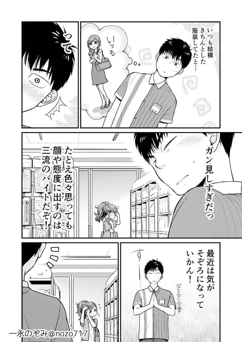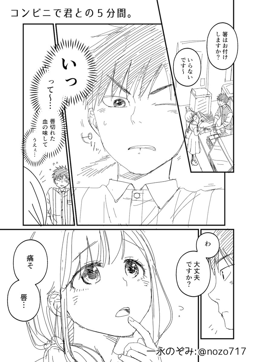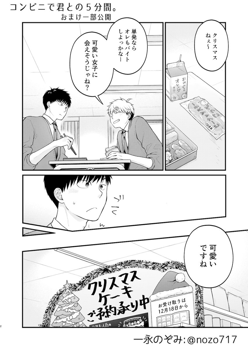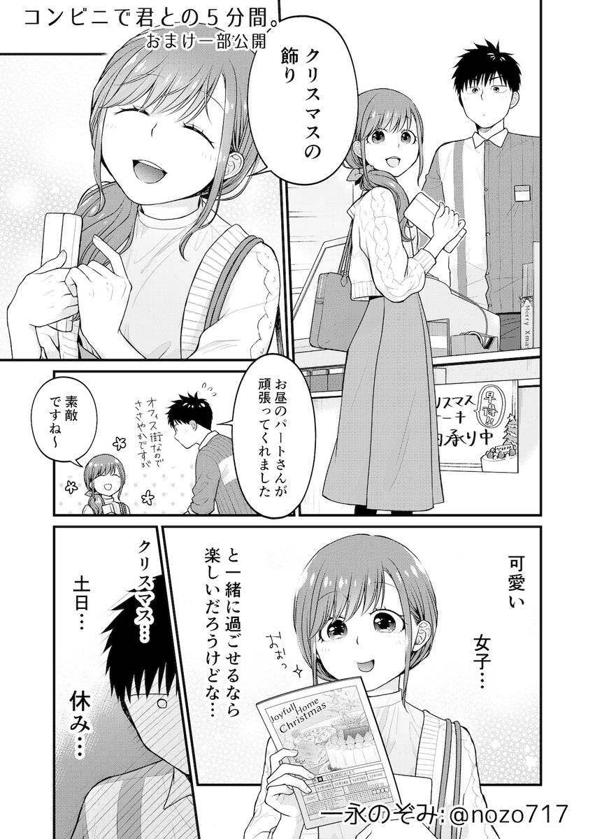 #コンビニで君との5分間。4巻 本日発売です📕☺️ おまけ冒頭の4Pチラ見せですฅ*•ω•*ฅ 笑って和んでドキドキの楽しい時間になりますように✨ twitter.com/nozo717/status…
