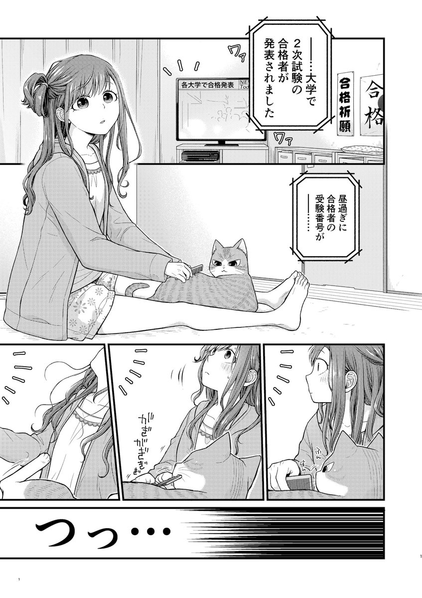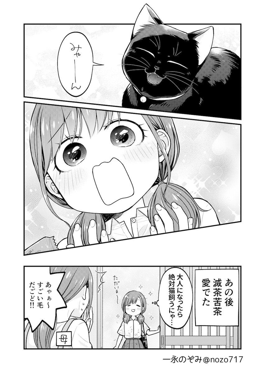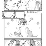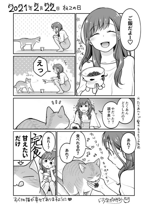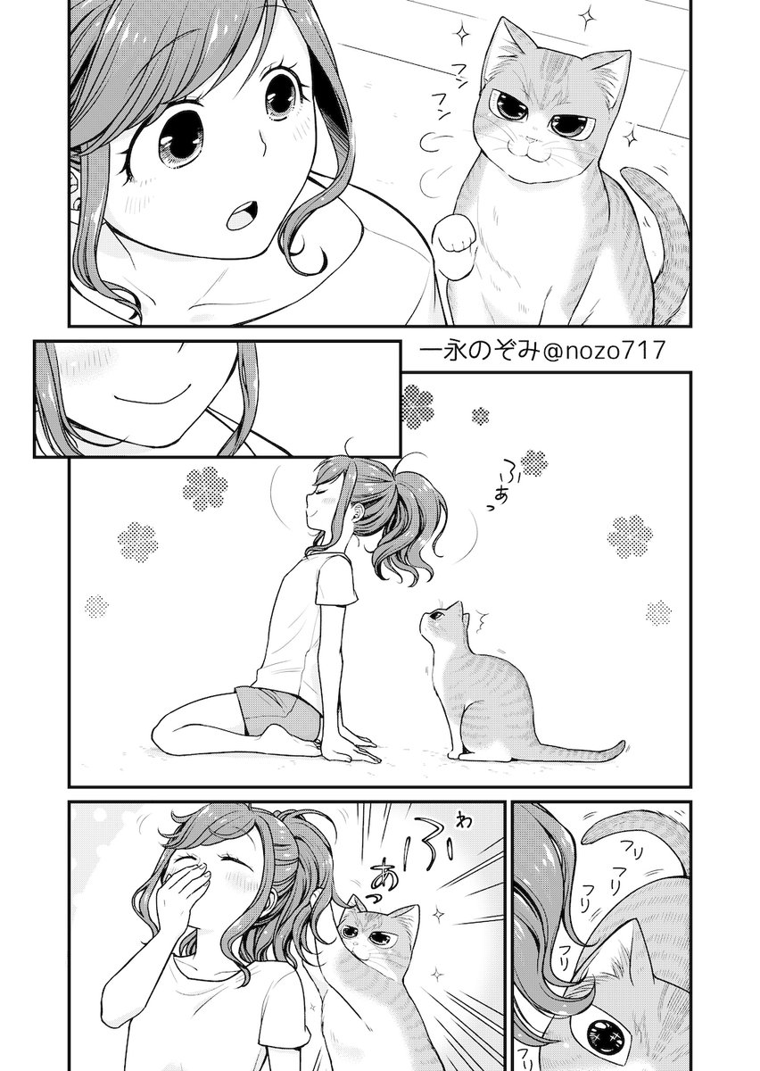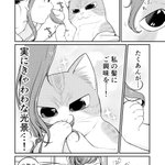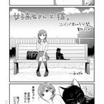 女子高生さんと猫。 【豆知識】 古来、日本では黒猫を「福猫」として、夜でも目が光って見えることから魔除け厄除けの縁起の良いにゃんこだったんだよ 愛でてってーฅ*•ω•*ฅ #コンビニで君との5分間。の番外お遊び漫画 #黒猫