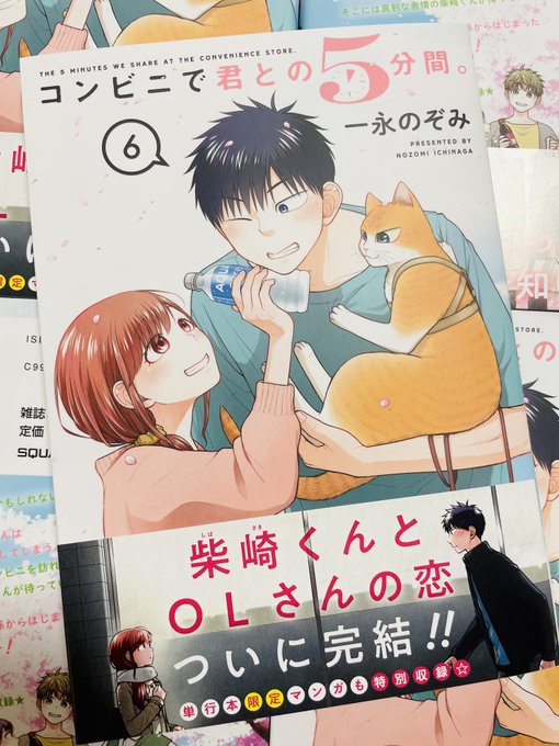 明日発売の6巻書影ですฅ*•ω•*ฅ 本編も全力で描き切りましたが、その後のふたりはおまけ漫画で本領発揮させていただきました💖 もっとおまけ漫画描きたかったァ…!! どうぞお手元にお迎えしていただけますように🐈🌸 #コンビニで君との5分間。