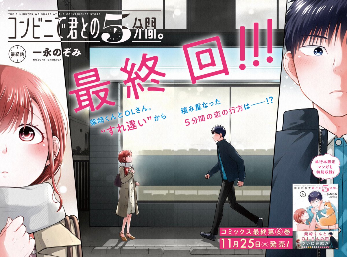 おはよぅお!ฅ*•ω•*ฅ 本日発売の #ヤングガンガン No.22に #コンビニで君との5分間。 88話89話、掲載です! 募る想いと巡る季節。 それぞれが見つめ、描く未来は。 最終巻6巻は11月25日(木)発売です🌟 最終回はNo.23に掲載!よろしくお願いします🐈💕