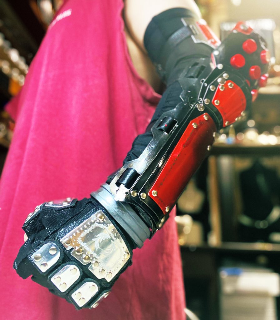 左腕のプロテクター出来た。 1mm厚のアルミ製で腕の甲部は5枚重ねだからマジで刃物も止められる本物のプロテクター。 次は右手のマテリア付いてる所作らな。 #FF7R #ティファ #コスプレ #自作衣装 #のののあとりえ