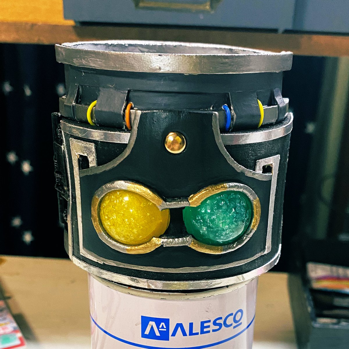 ティファのマテリア部分できた。 ちょい光がヨツイかもしらん。 さて、次はチョコボとボムか。 #のののあとりえ #FF7R #コスプレ #自作衣装