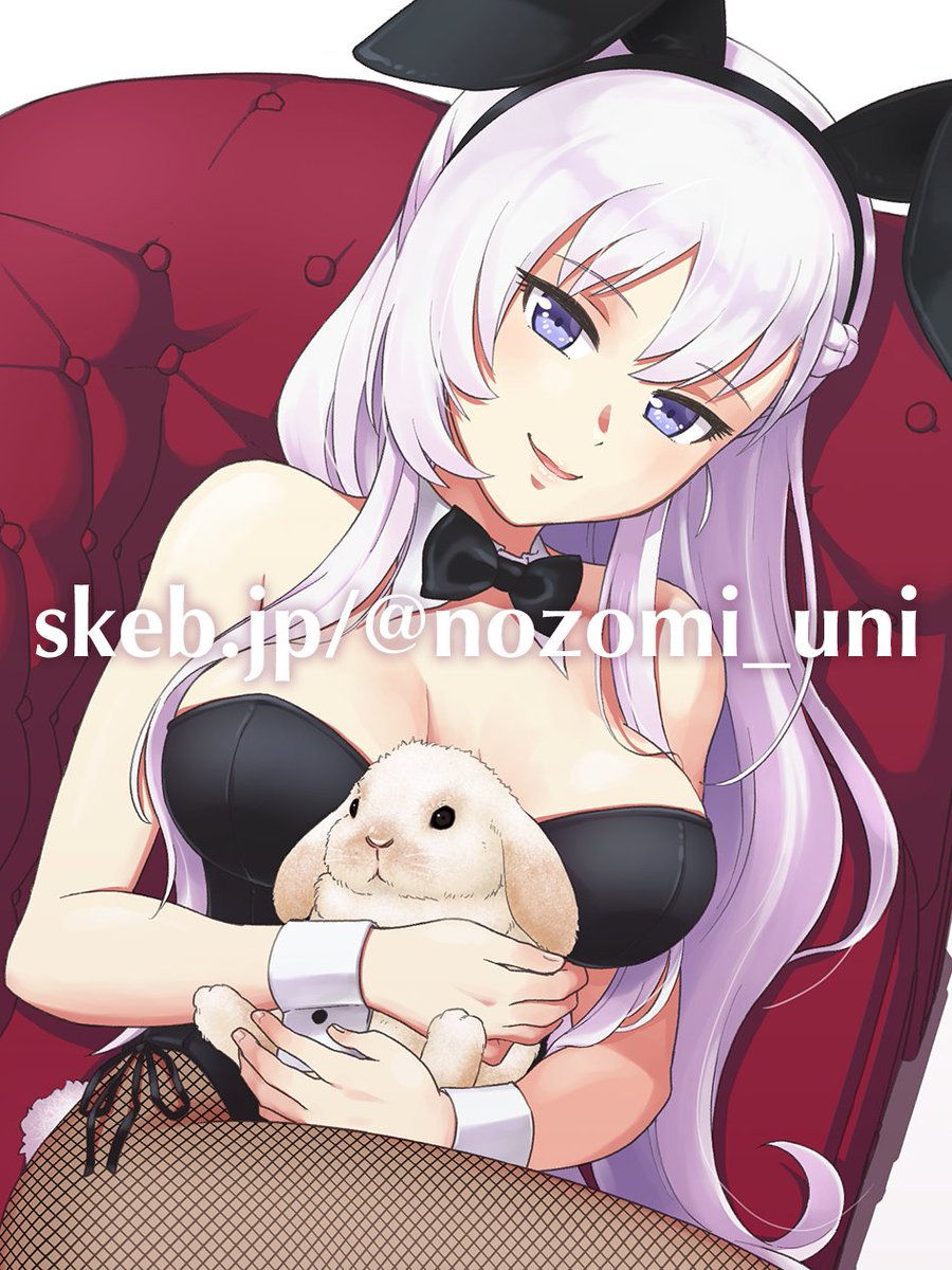 Skeb納品へいおまち! 「『アズールレーン』のベルファストが黒いバニー衣装を着てウサギ(たれ耳)を抱っこしているイラストをお願いいいたします。キャラクターの全身が見えるように...」 skeb.jp/@nozomi_uni/wo… #Skeb #Commission @skeb_jpより