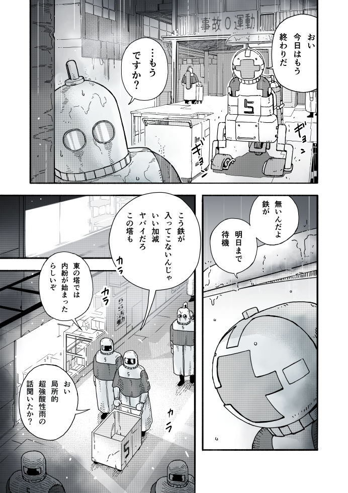鉄の塔 #6 P16-18 だんだん作画が怪しくなってまいりました。ここから先は展開も今読むと何か違うので、とりあえずここまでとさせて頂きます。時間のある時に手直ししてアップしたいと思っています、思ってはいるのです(本当) #漫画が読めるハッシュタグ #創作漫画