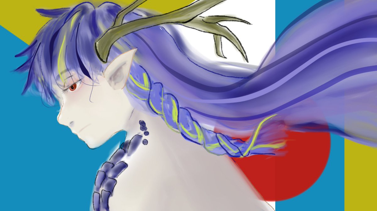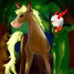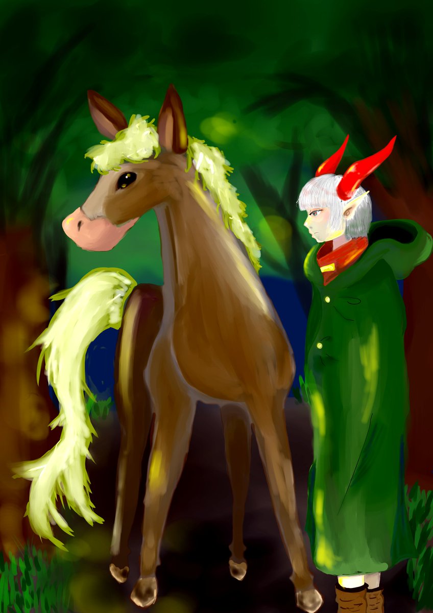 #イラスト #夏の創作クラスタフォロー祭り #夏の創作クラスターフォロー祭り #絵柄が好みって人にフォローされたい #みんなのSNSなんでも展示会2022 「旅の相棒」 鬣と尾がほんのり光る馬とツノっ子