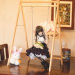 足りない資材調達のついでに、ブランコ撮影('ω') 100均の草を巻き巻きした。