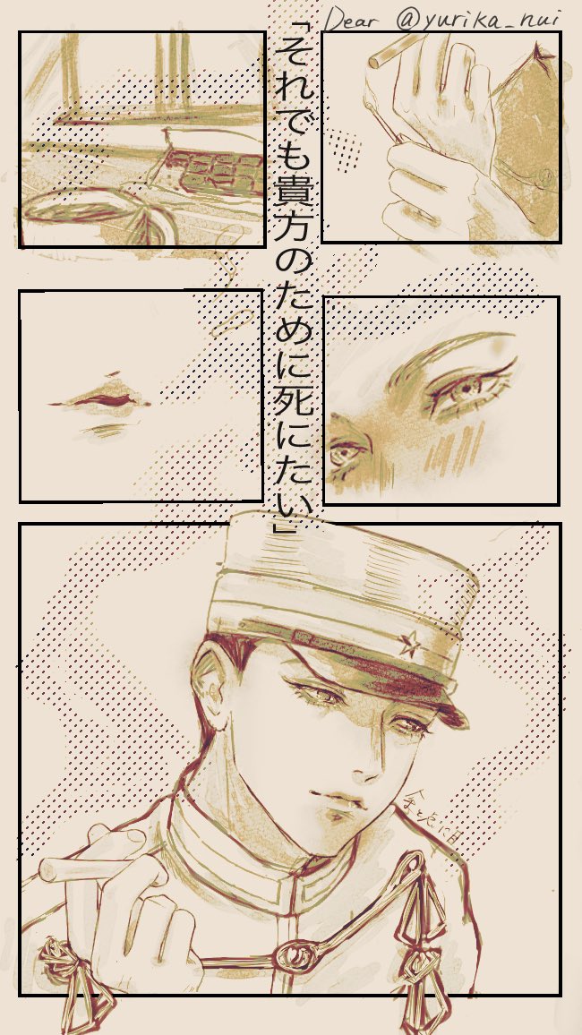 ユリカさんに許可をいただいてこちらのお話のファンアートを描かせて頂きました。 とても美しい少尉殿に会いに行けます。 素敵な勇尾ありがとうございます🙏 twitter.com/yurika_nui/sta…