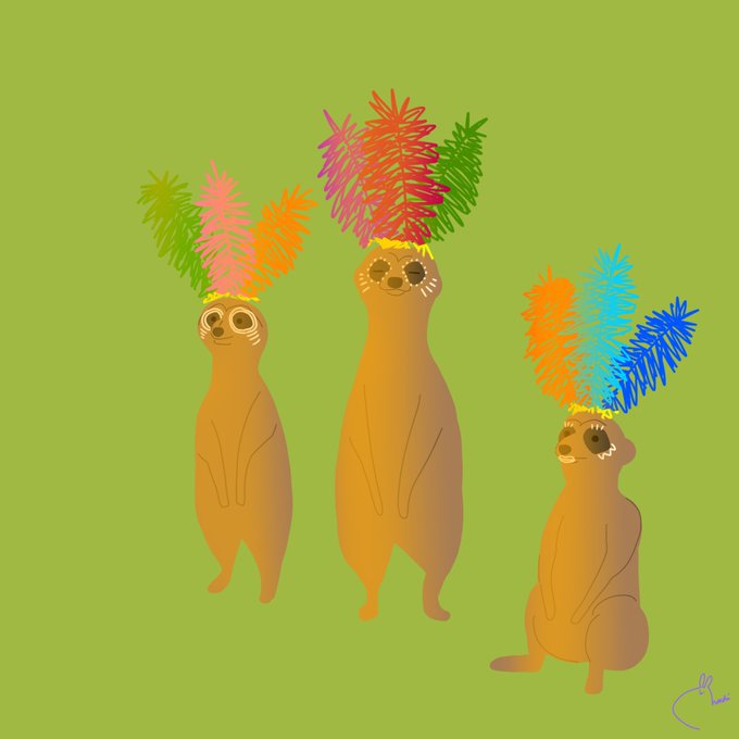 どんな状況下であれ光合成は欠かさないミーアキャット🌿🌞🌞🌞 #illustration #絵描きさんと繋がりたい #イラスト #イラスト好きな人と繋がりたい #絵柄が好みって人にフォローされたい #digitalart #ゆるいイラスト