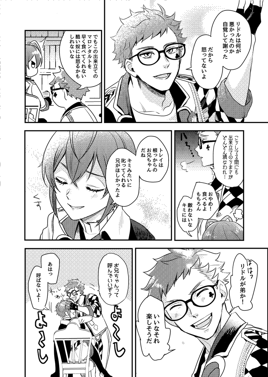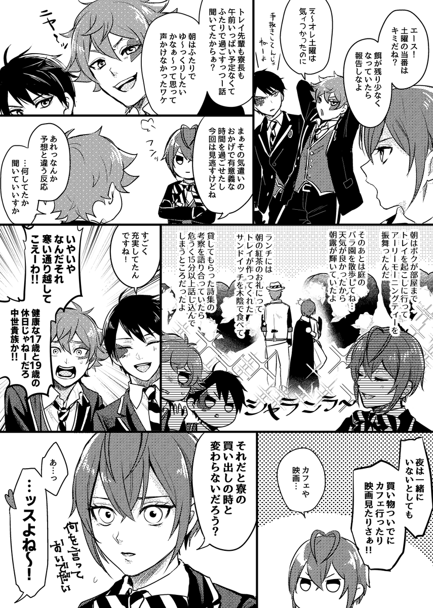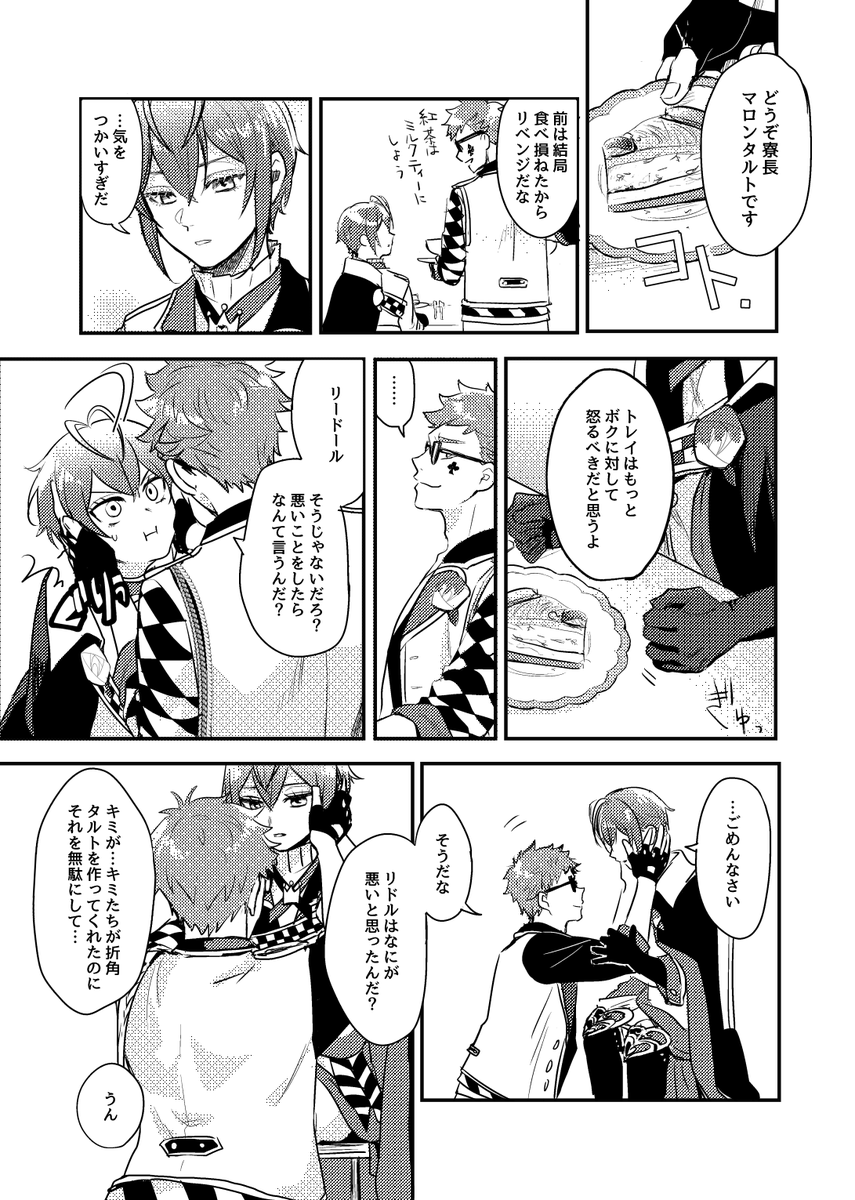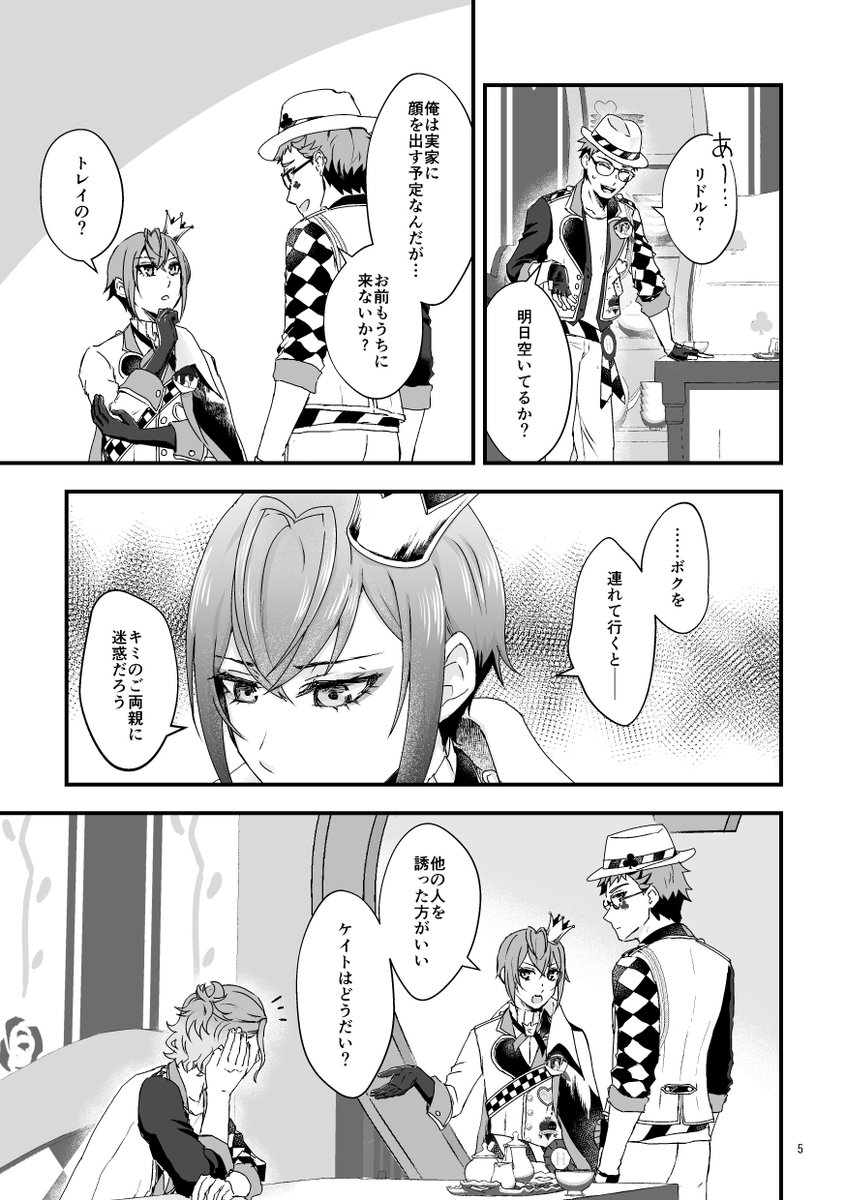 3/19 BotM19 #スミレとバラと甘い君2 【東4ホールお41a雑木林】のトレリド新刊サンプルです。 🌹「帰省でお母様に釘を刺されて元気出ない」 ♣️「おやつ食べないのか?」 🌹「う〜ん…まぁ成績も落ちてないし健康だしいっか!食べちゃお!」 ♣️「良かった🤗」 な話です。 A5/32p/400円(会場頒布価格)