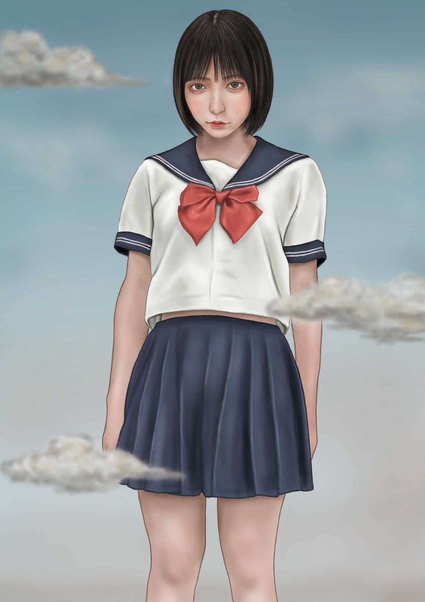 2022 48枚目 「JK・ザ・ジャイアント」 #絵描きさんと繋がりたい #イラスト好きな人と繋がりたい #秋の創作クラスタフォロー祭り #アトリエの系譜 #みんなで楽しむTwitter展覧会 #ART_RT #創作の狼煙 #illusRT #noriofthedead
