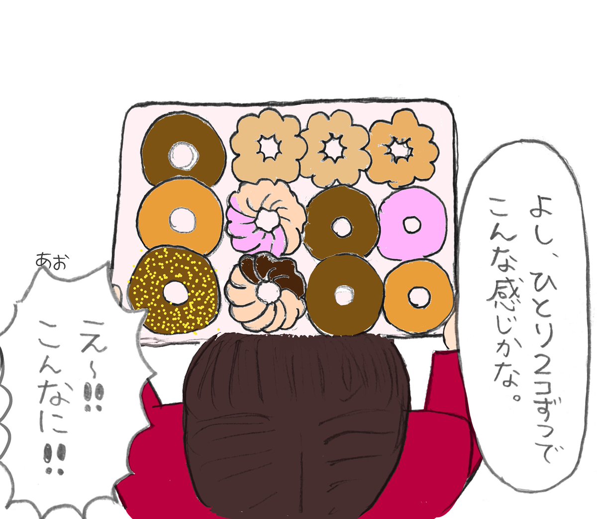 嬉しいけど、いいの!?って遠慮がちな感じが可愛かったです。 #育児絵日記 #育児漫画 #育児日記 #育児あるある #育児イラスト #育児 #年子 #女の子ママ #3歳 #ドーナツ