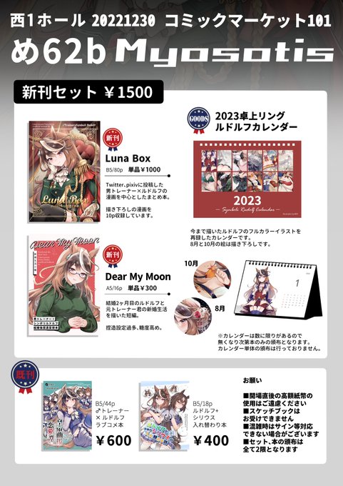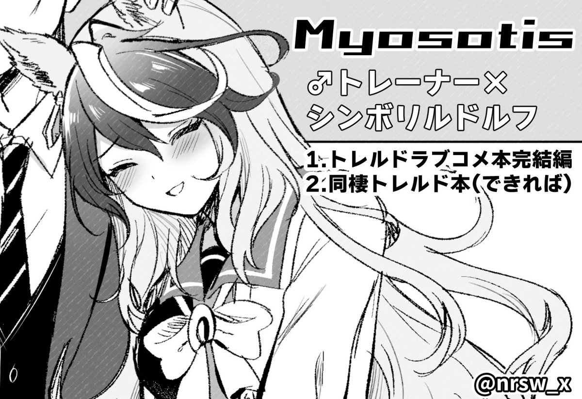 コミケの新刊2冊目です~ 結婚2ヶ月目のルドルフと元トレーナー君の新婚生活を描いた短編です。 捏造設定過多・イチャ要素強め。 通販【melonbooks.co.jp/detail/detail.…】 pixiv【pixiv.net/artworks/10394…】
