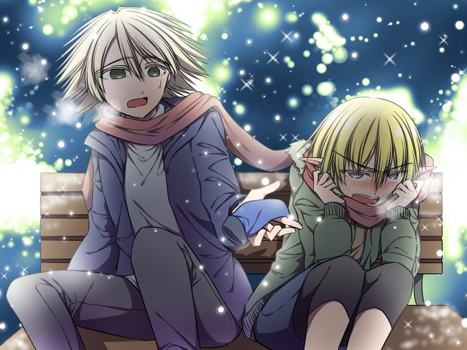 とある聖夜のリクとサイラス リク「お前寒いんだろ?」 サイラス「寒くない」 リク「いい加減強がんなって」 サイラス「強がってない!」 リク「じゃあどこか室内に行こう、お前凍えちまうぞ」 サイラス「……別にここでいい」 クリスマスだからね😊 #MerryChristmas2022 #絵描きさんと繫がりたい