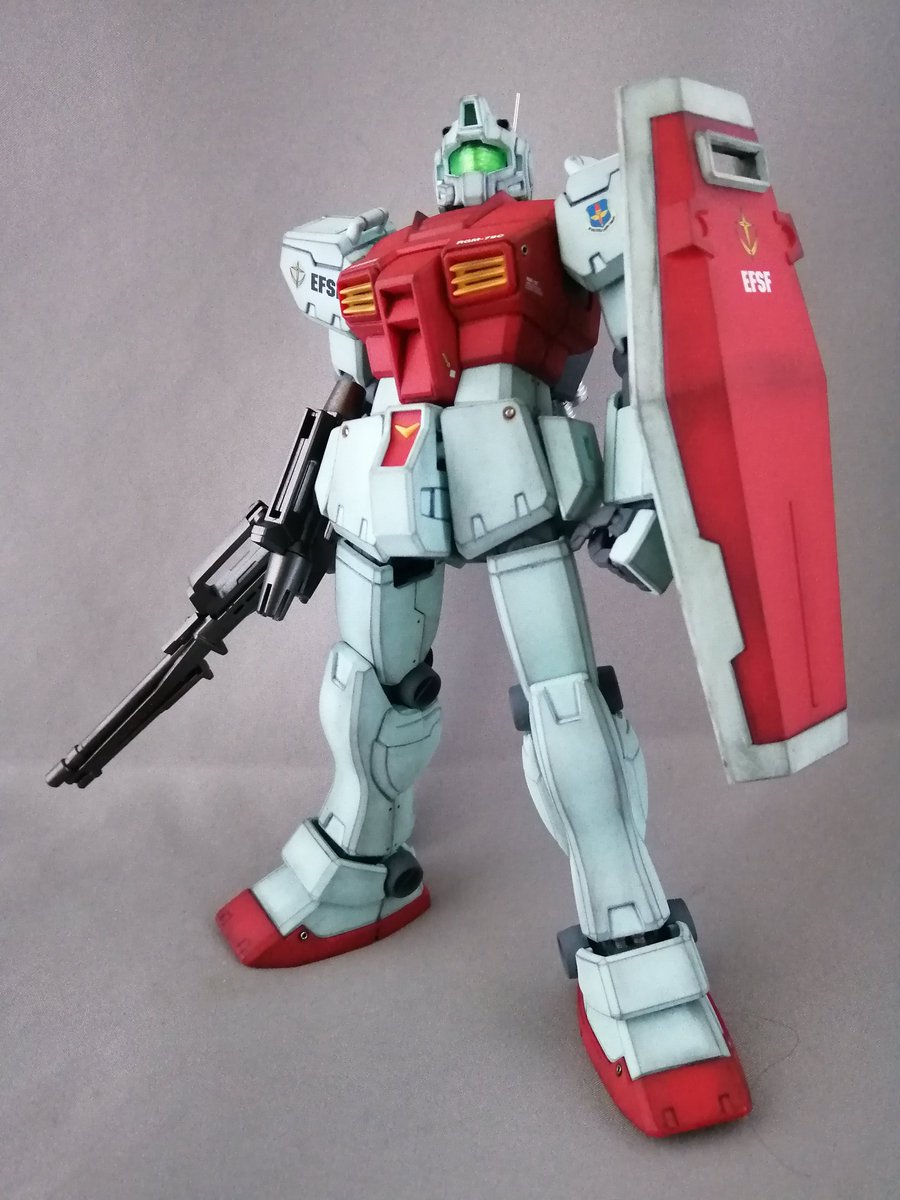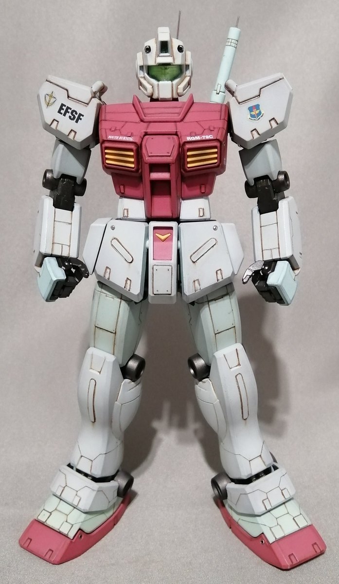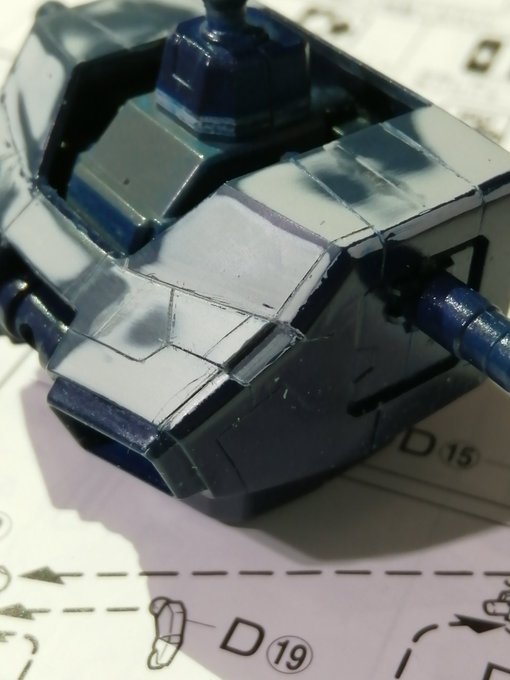 またMGジム改ですが、今度はスジボリだけじゃなくて面の彫り下げに初挑戦。辺ならデザインナイフだけで彫れるもんですね。で、彫り下げた所に盛り上げディテール追加。面倒だけど良い感じ^^ #ガンプラの画像を貼るとRTされると聞いて