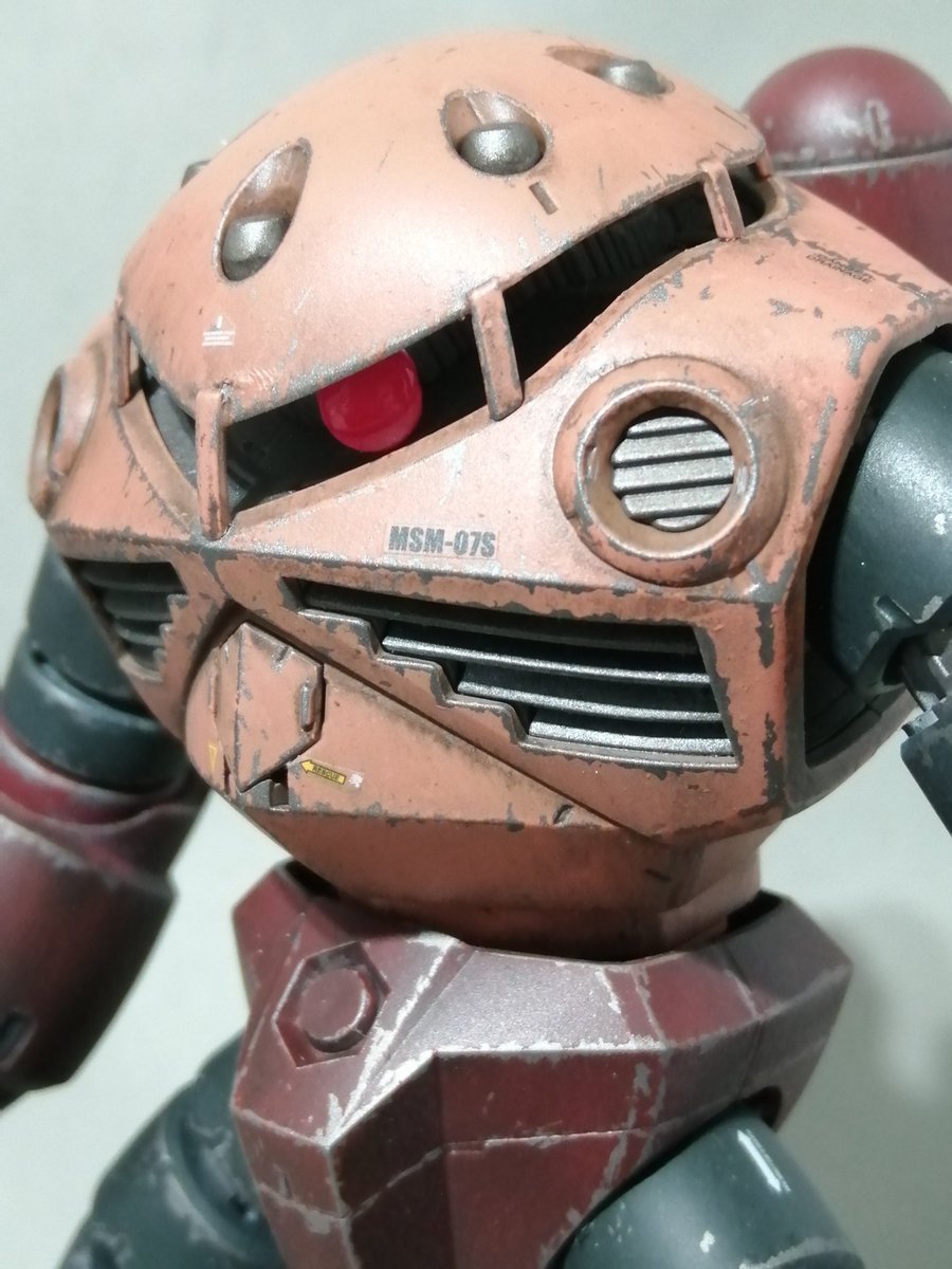 MGシャアズゴ。 サフ→焼鉄色→シリコンバリアー→基本塗装で、爪楊枝とか爪とかで剥がしていきました。 #ガンプラ #ガンプラの画像を貼るとRTされると聞いて #ズゴック #シリコンバリアー剥がし
