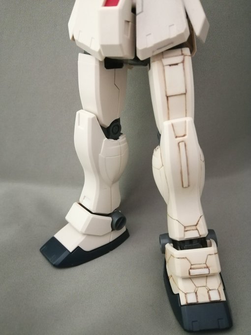 よし、下半身だいたい出来た(๑•̀ㅂ•́)و✧ ゲート処理(ペーパーがけ)までやって3時間程でここまで出来るスピード感も水泳部(というか初期MG?)の魅力ですね〜☺ #ガンプラの画像貼るとRTされると聞いて
