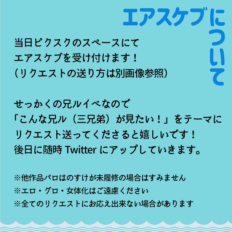 当日はエアスケブを受け付けたいと思いますので、メッセージ送っていただけると嬉しいです!! どうぞよろしくお願いします!! #兄ル出港