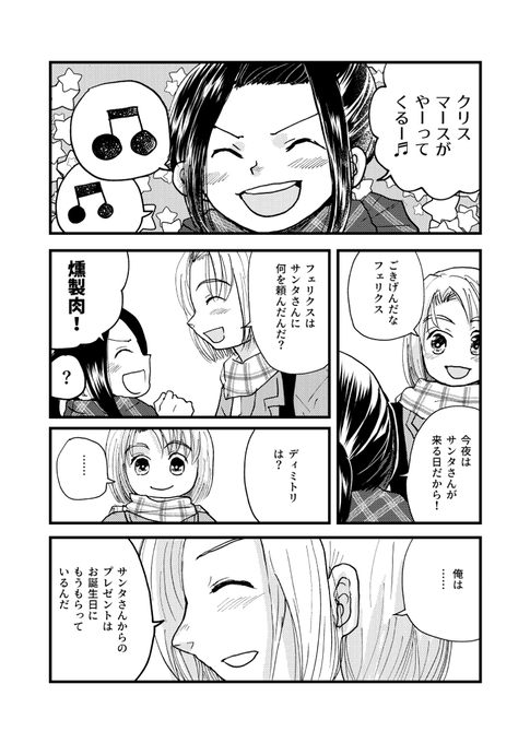 ディミトリ誕生日おめでとう!!!誕生日プレゼントとクリスマスプレゼントが毎年一緒の現パロ小学生なディミトリがサンタからクリスマスプレゼントをもらう話です。出てくる人はディミトリとフェリクス(+α)です。1/2 #ディミトリアレクサンドルブレーダッド生誕祭2021 (1/2)