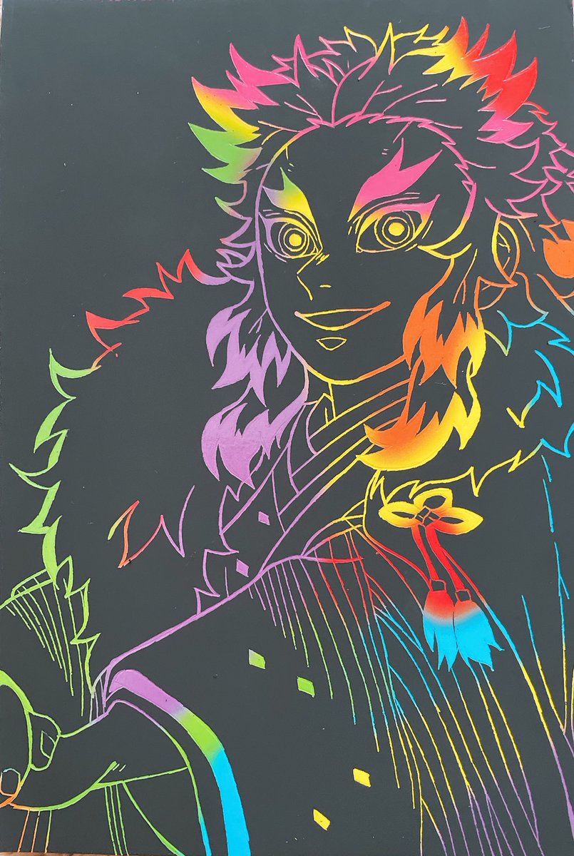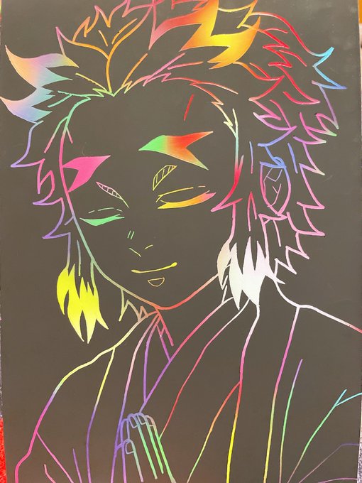 24 417 や、、やっとできた、、、😇😇 かっこよすぎてプレッシャーで何度も手が止まって、やっと🤦♀️ たくさんの人に見てもらえたらな、、😇パタリ #kmtスクラッチ #煉獄杏寿郎 #鬼滅の刃イラスト #スクラッチアート 22/05/16 21:24