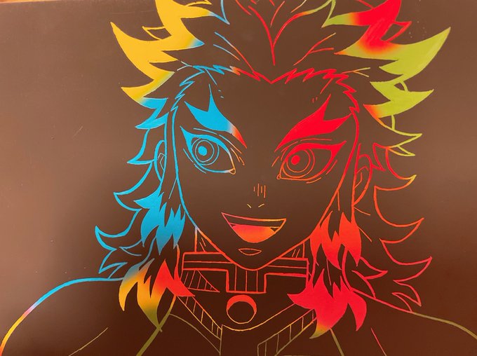 今日の #kmtスクラッチ 🔥 煉獄さんの凛々しい横顔が大好きです🥰 最近また時間ができると削り絵をやる気力が出てきたので楽しいです☺💓 皆さんに元気を与えられたら嬉しいです🤭 #スクラッチアート #煉獄杏寿郎 #鬼滅の刃イラスト