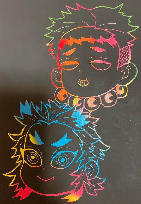 おはようございます☀️😊 皆様、ひとまず不安な夜は明けましたね。 余震等気を付けながら過ごしましょう✨ 皆様、少しでも元気が出るように、、 たまたま描いていたへんてこ顔の2人です😂 元気になーれ🥰 #kmtスクラッチ #鬼滅の刃イラスト #スクラッチアート