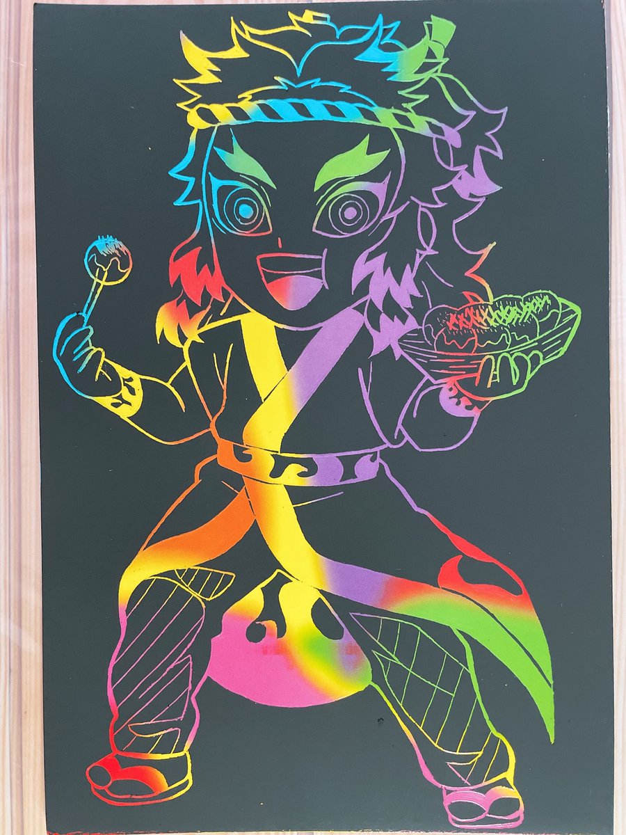 はあ~やばい。 さっきのともぬいに完全に心を奪われて無心でカリカリしてました。笑 にこにこ兄上かわいすぎる😭💓💓 #kmtスクラッチ #煉獄杏寿郎 #鬼滅の刃イラスト #スクラッチアート