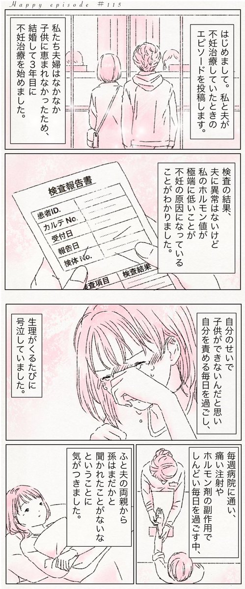 新しいお話を描かせて頂きました☺️ 不妊治療中のご夫婦のお話です。 旦那さんがとにかく素敵です…( ; ; )💕 ぺぽさん、素敵なエピソードをありがとうございました🙇♀️💕 #エッセイ漫画 #不妊治療 #漫画が読めるハッシュタグ