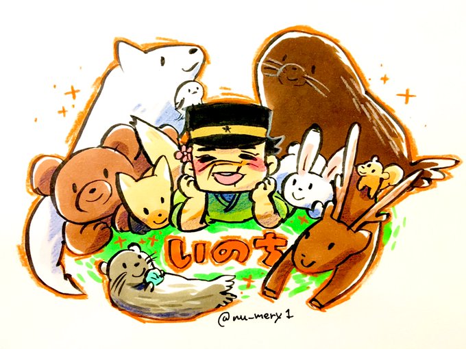 #ゴールデンカムイ版深夜の真剣お絵描き60分一本勝負 【お題】祝!31巻発売 全然一時間で描けませんでしたー! 「ヒンナ」食事に感謝する言葉 これからも二人は動物達を狩ってチタタプしてヒンナヒンナして暮らしてゆくのでしょうね🐿