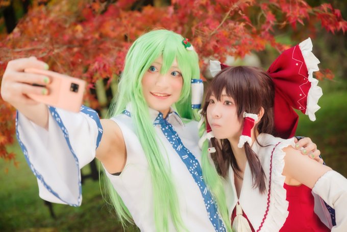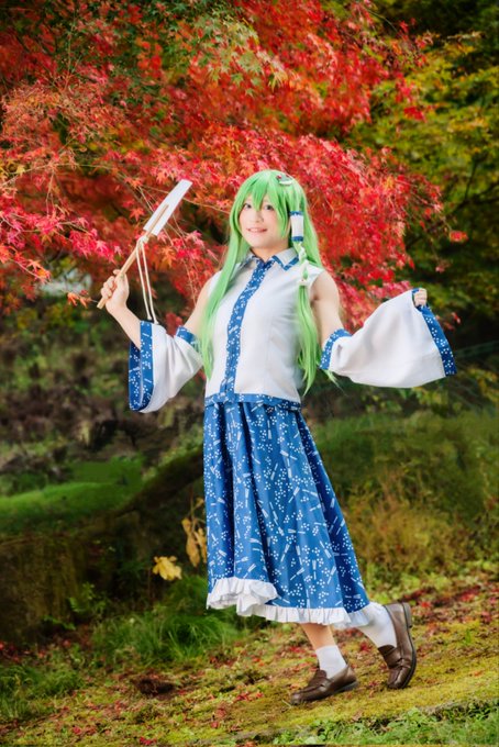 11/6 自然郷東沢さん@YilNsにて 東方Project:東風谷早苗 「見てください!綺麗に紅葉してますよ!」 📷:メッサーシュミットさん@M_Schmitt1 #東方Project #東風谷早苗 #コスプレ