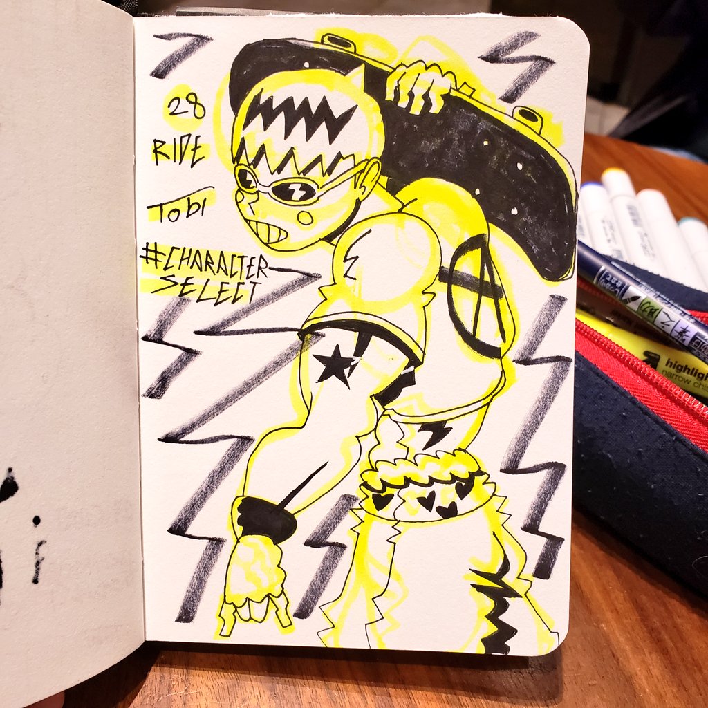 Day 28-Ride 2003 Vibe #inktober #inktober2019 #nudrawbes #characterselect #micron #sharpie #highlighter #sketchbook #inking #oc