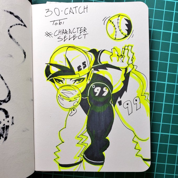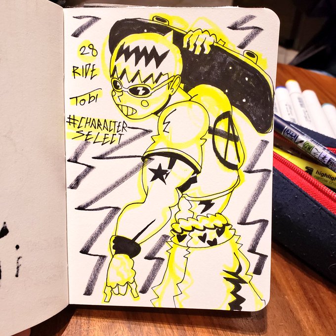 #batsu from #rivalschools for day 4 of #inktober Did @mako_vice #vicetober prompt: #class #inktober2019 #micron #sharpie #highlighter #sketchbook