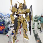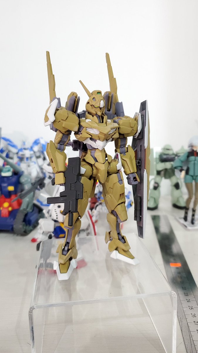 #ガンプラスキャンムービー で今日持っていった機体「ルブリスアグレッサー」。 GUND搭載機開発にあたってまずベースとなるMSの建造を行ったものに、更にビットオンフォームのバランス検証のための試作パックを装備した状態、という脳内設定。銃と盾はオックスアース社の標準量産品。