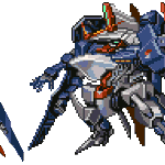 #ジオン公国建国記念日 こんなタグがあったとは…日付が変わる前にとりあえず手持ちのジオン系 #ドット絵 を。 リックドムは前に打ったリックドムⅢの背中の推進器を外しただけのお手軽改変。
