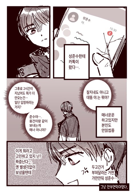 준수는 지상고로 전학을 간 직후에 영중이와 연락을 주고받은 적이 조금 있다.. 의 상상