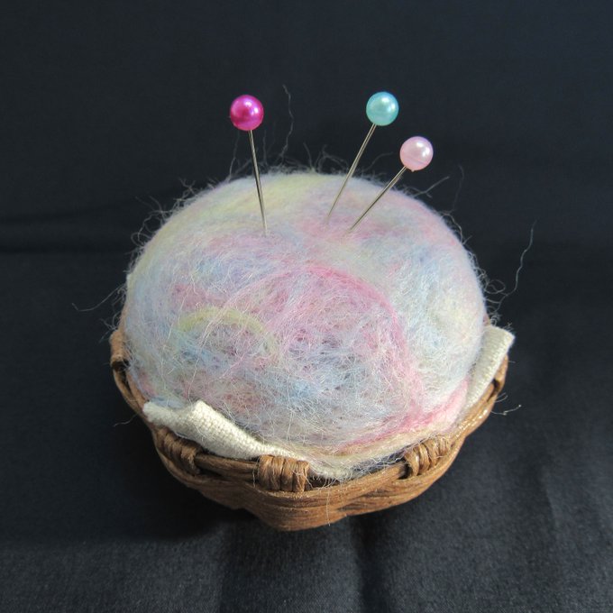 ピンクッション第3弾! 羊毛フェルトをマーブル模様にしました😳 #minne #minneで販売中 #羊毛フェルト #ピンクッション #ハンドメイド