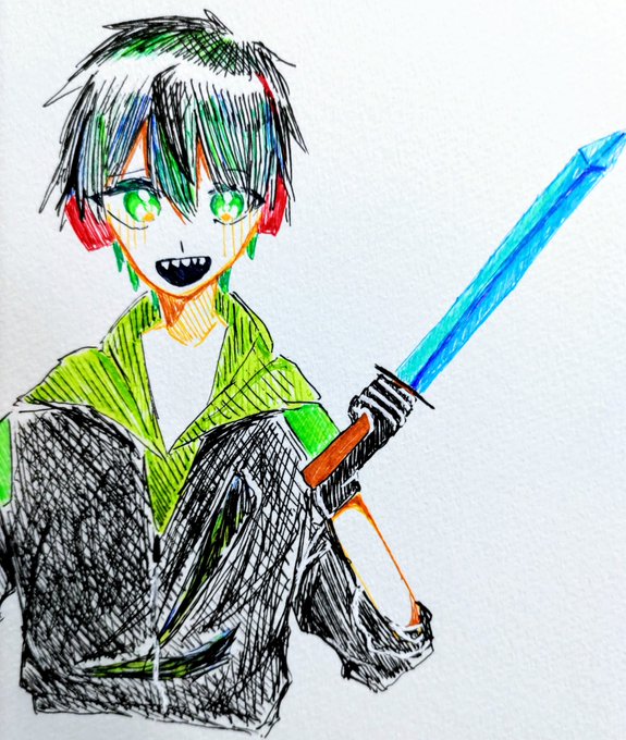 3 14 #しろっぽ 初ボールペン画のやつ 23/06/04 19:22