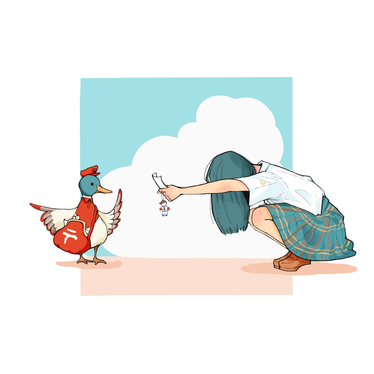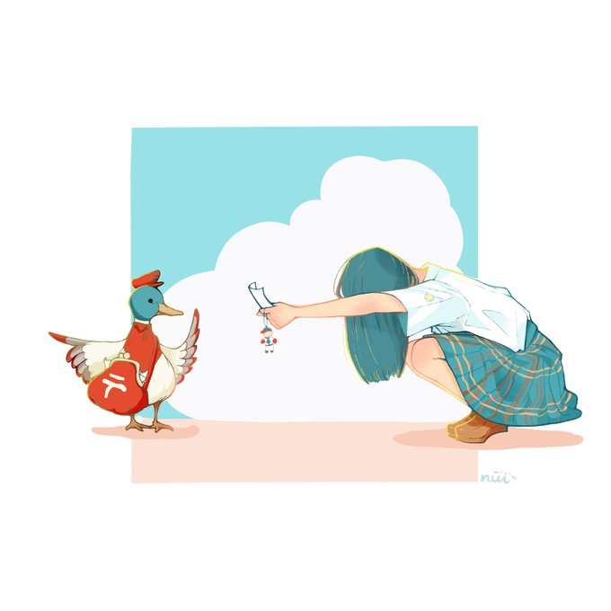 カモさん「自分で渡しなよ」 もうすぐ夏が終わりますね。 初めてストーリーを意識して描けました☺️ よく池まで見に行くカモさんも可愛く描けた🦆 #イラスト #イラスト好きな人と繋がりたい #絵柄が好みっていう人にフォローされたい