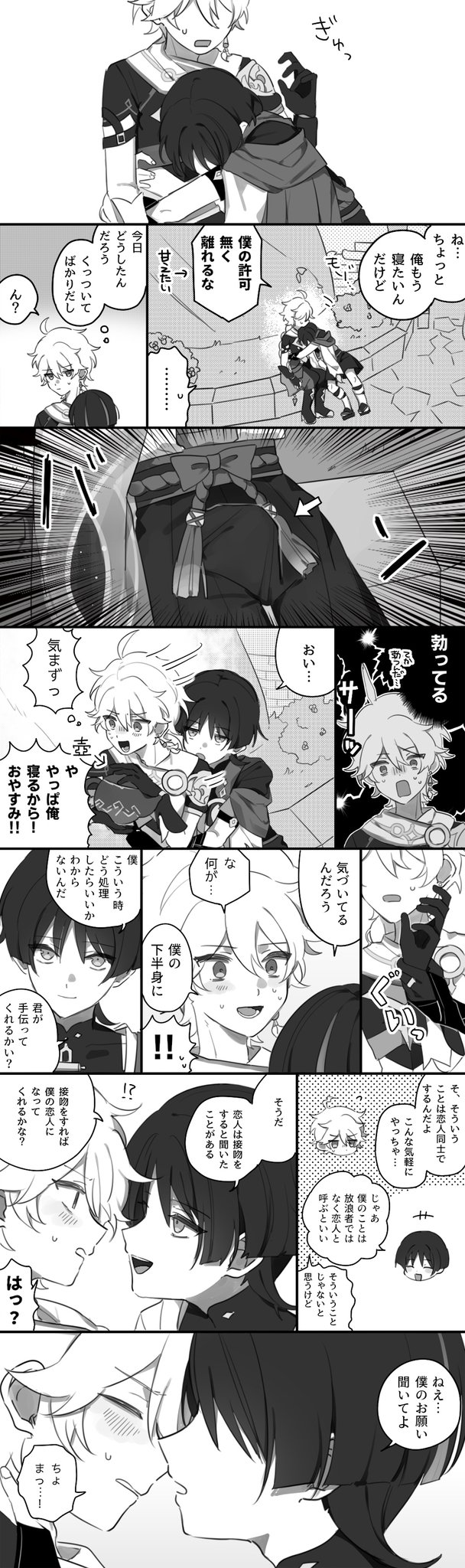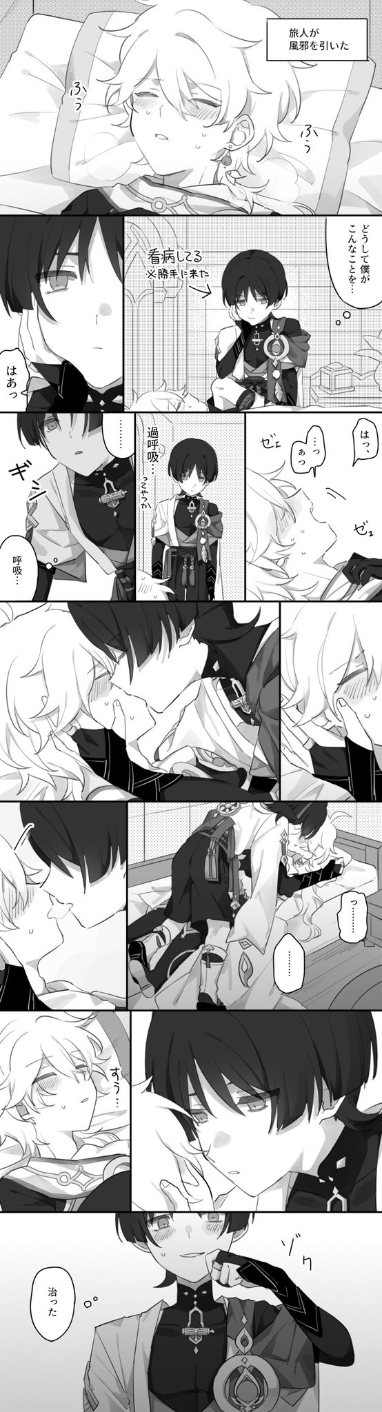 本来呼吸を必要としない☂が苦しそうな⛅のためにわざわざ息を送るというシチュに興奮するので人i工i呼i吸するスカ空を描きました… Breath #scaraether
